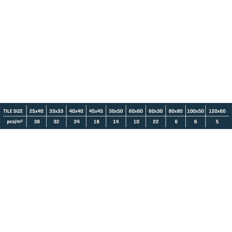 A képen mellékelt táblázat az adott méretű csempék egy négyzetméteréhez szükséges minimális szintező talpak darabszámát mutatja.