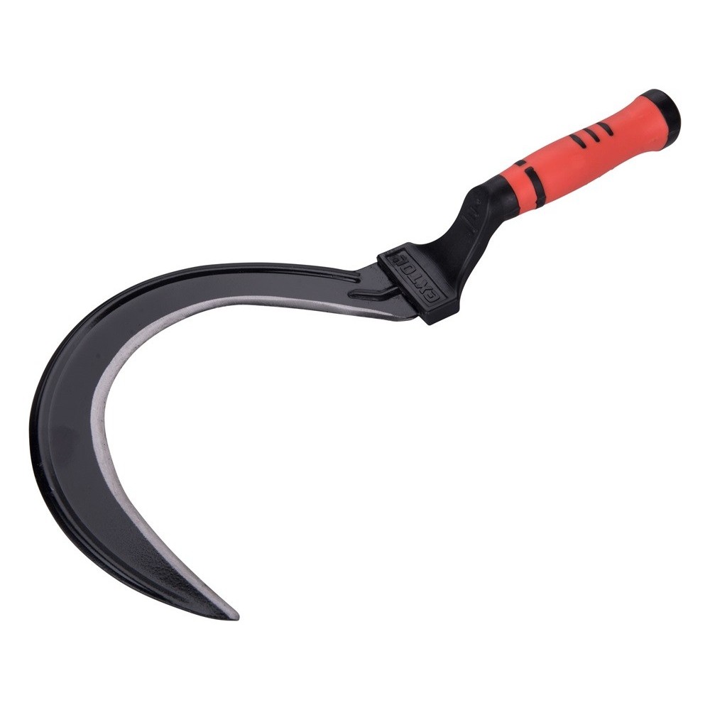 Kerti munkára alkalmas, két komponensű műanyag markolat időjárásálló  PP+TPR anyagból, kiváló mínőségű kovácsolt acél penge, HRC 45-50 keménység, fekete bevonattal.