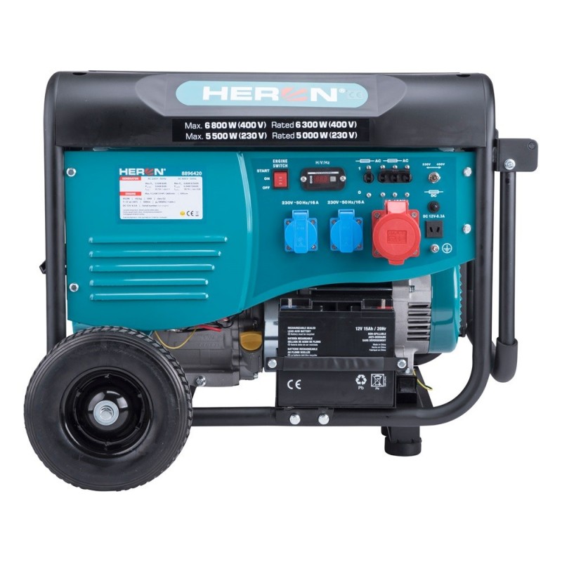 Feszültség / frekvencia: 400V/50Hz ill. 230V/50Hz teljesítmény max./ névleges: 6,8kVA/ 6kVA (400V) és 4,5kVA / 4,0 kVA (230V) teljesítménytényező (cos fi): 3fáz./1fáz. : 0,8/1 motor: típus: négyütemű,