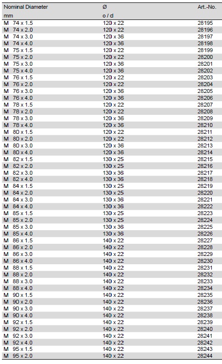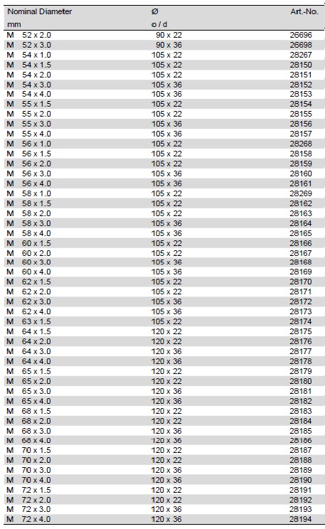 Rendelhető méretek: M2,5-M110-ig