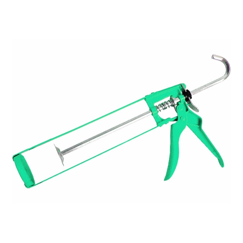 A kinyomó pisztoly dugattyúrúdja a nagyobb súrlódás érdekében hatoldalú profillal rendelkezik. A visszahúzási funkciónak köszönhetően a munka befejezése után az anyag nem folyik ki a patronból. A kinyomó pisztoly kampós végződése a dugattyú kívánt helyzetbe történő kényelmes és gyors beállítását szolgálja.