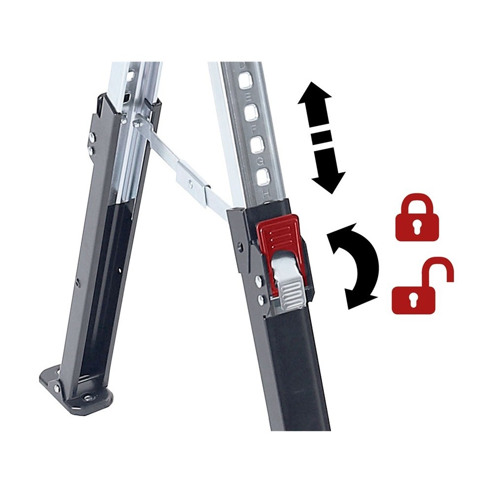 A lábakon található kihajtható kezelőfogantyúk használhatók nagyméretű táblák és más anyagok megtartására, fogantyúnkként akár 30 kg-ig.