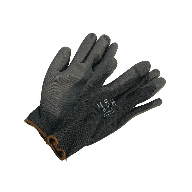 Kötött kesztyű fekete nylon, poliuretánba mártott tenyér és ujjhegy