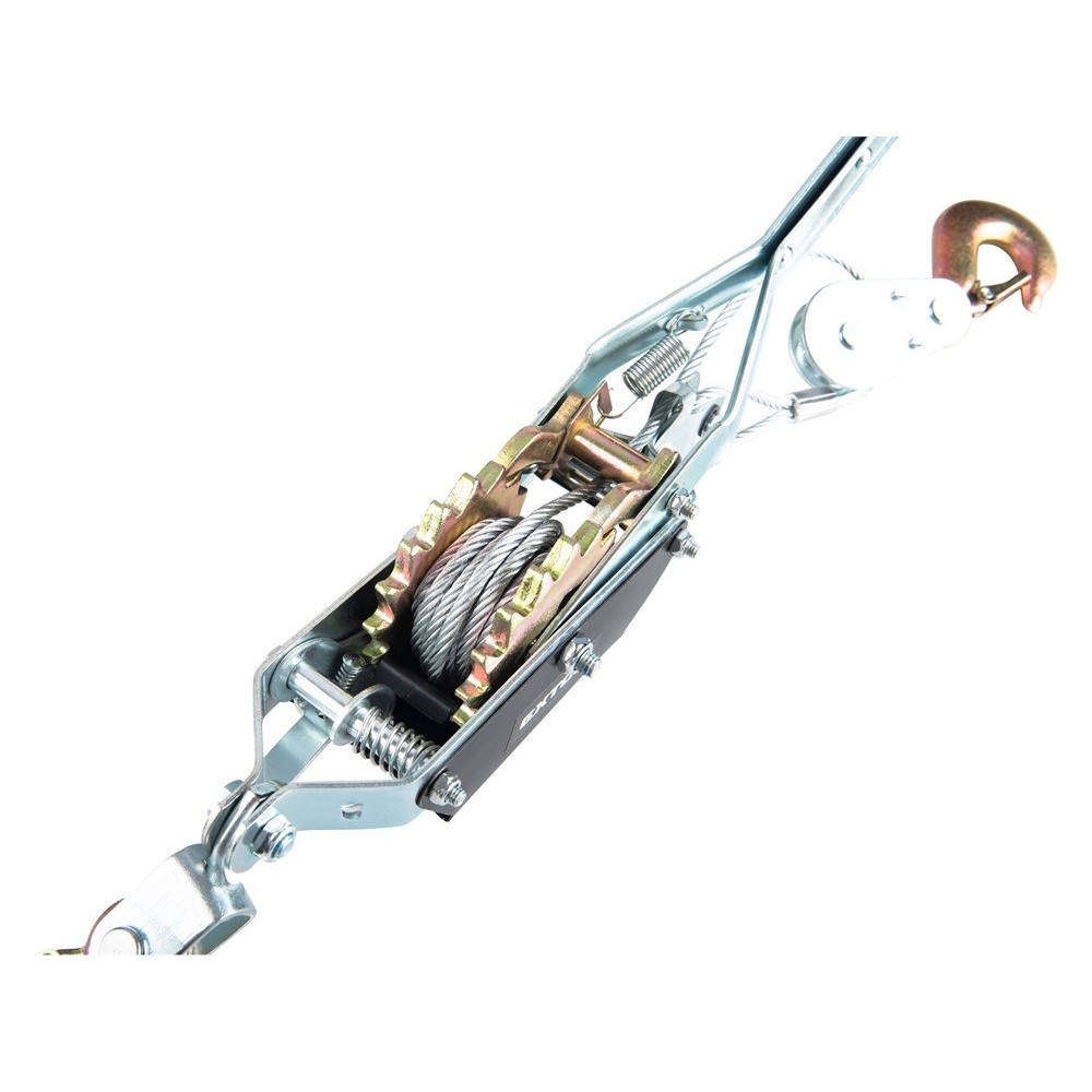 max. terhelés: 2000kg, 2 db horoggal, sodrott acél drótkötél 4,8 mm × 2,2 m (kb. 1,5 m használható)