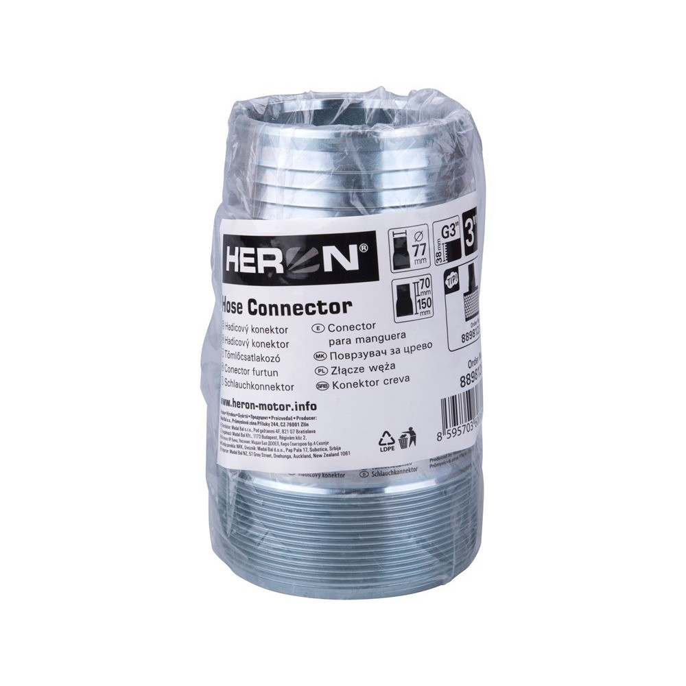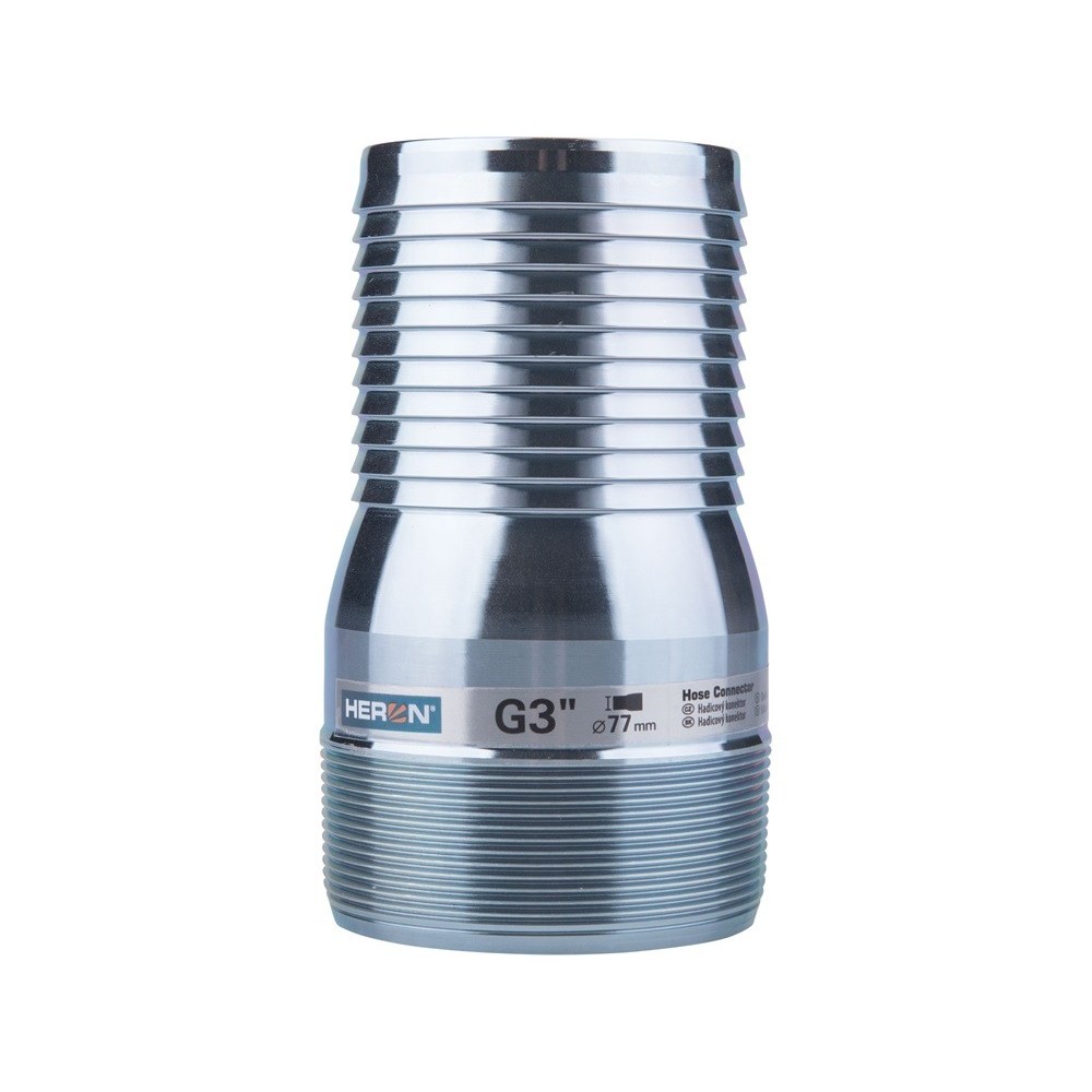 G3 menet, tömlő felőli vég: O76×71mm, teljes méret: O88×147mm, menet hossza: 33 mm, tömeg: 780 g, cink bevonatú acél