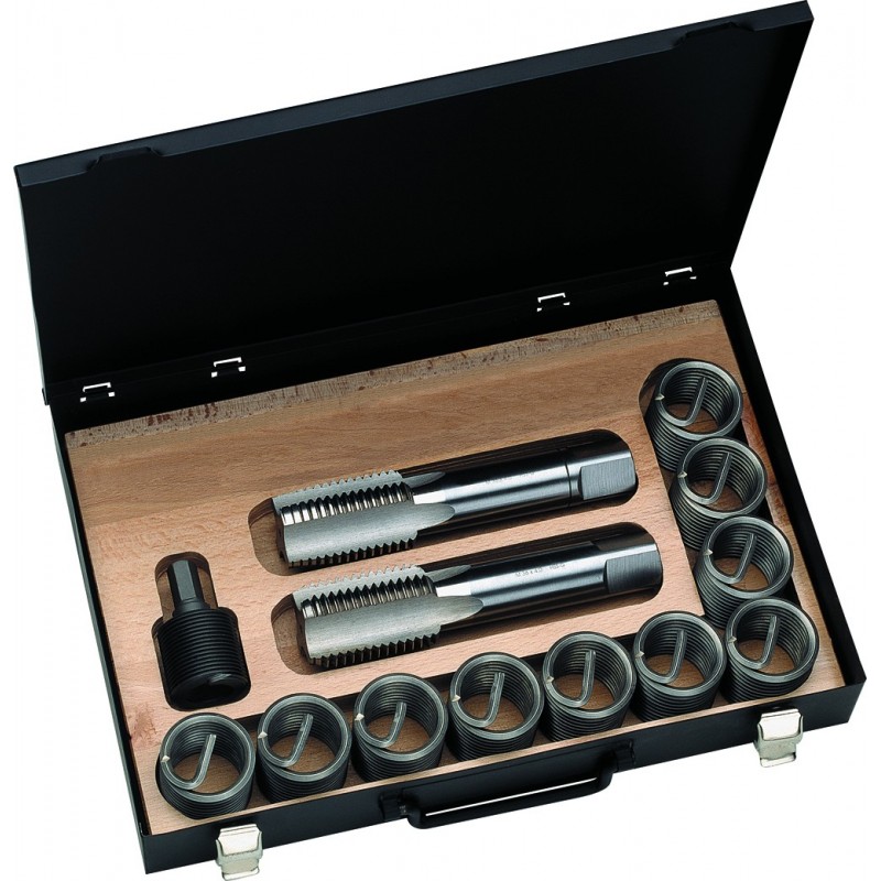Metrikus Helicoil. M14mérettől kezdődően a készletben nincs magfúró és fülletörő. Az opcionálisan rendelhető a termékhez!!